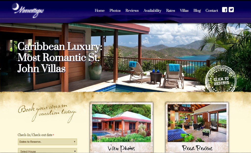 Other features of the new Mooncottages website that you’ll find helpful, especially for first time guests, are the scores of 5-star reviews from Trip Advisor, HomeAway and our own Guestbook Journal … all in one place to browse what others have said and enjoyed.  And finally, the Mooncottages Blog that are reading right now is new! We’ll keep you posted on special offers and things happening on St. John and you can keep updated by simply liking us on Facebook or Twitter because that’s how we distribute our Blog posts.