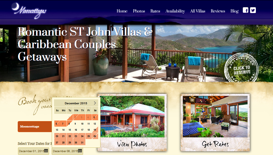 We’ve been away for a while. But, we’ve been busy improving our Mooncottages ST John Villas site making it far more user friendly and fun to use. Now it’s easy to check real-time villa availability with a new calendar function that works on any mobile device like your iPhone or equally well on a desktop computer. Best of all it syncs with HomeAway and VRBO! So, if you were looking at one of our romantic ST John villas on one of those sites first and then came over to www.mooncottages.com, you can still see which dates are available for your special vacation, honeymoon or anniversary.